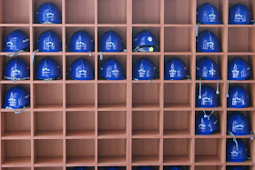 Well-arranged helmets to enter one of the infiltration tunnels built in the Korean War |